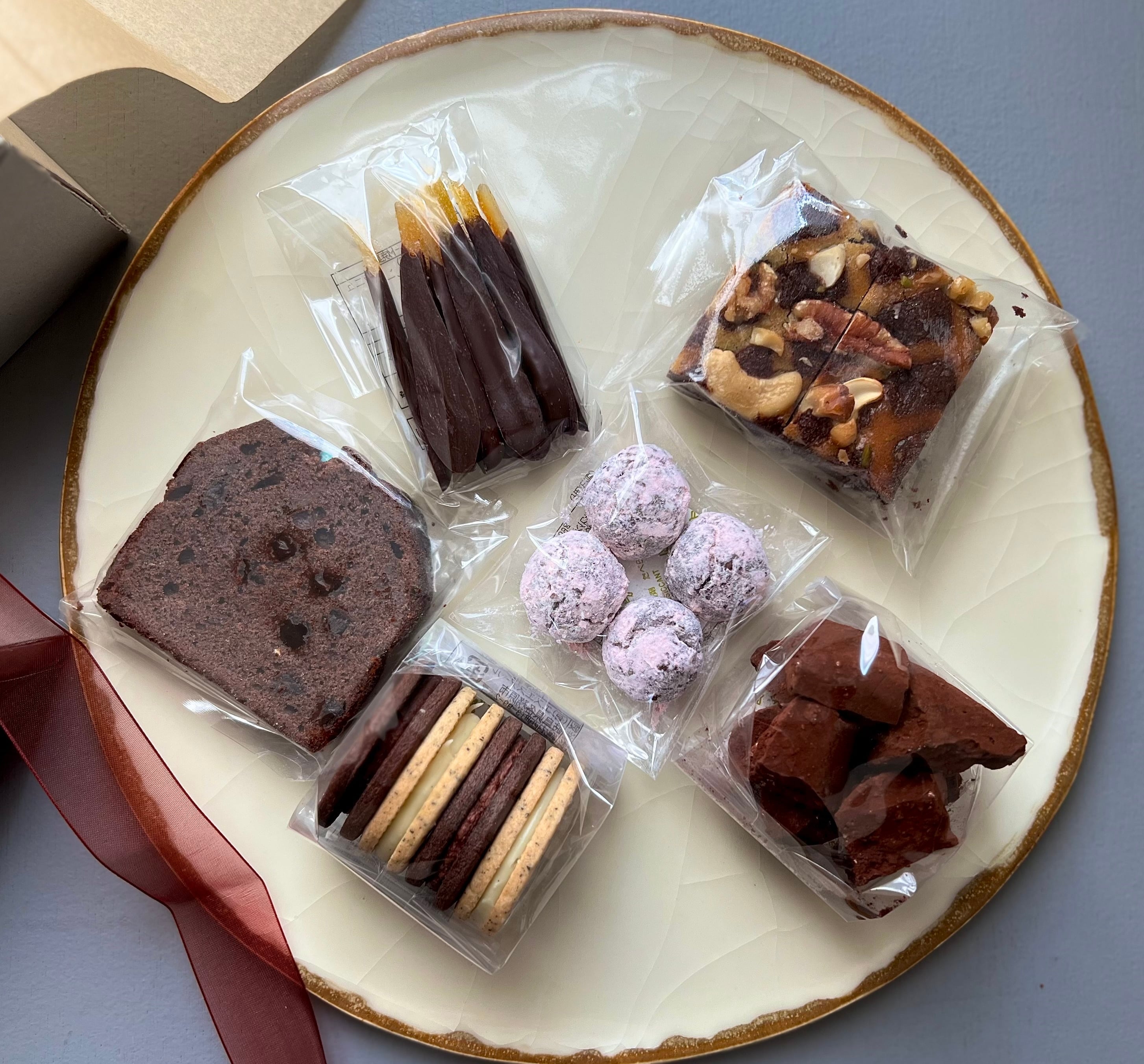 カドゥームで1番人気のバター風味豊かな塩サブレ生地に、胡桃とアーモンドを 加えて香ばしく焼き上げたサブレと、クーベルチョコレートのお菓子